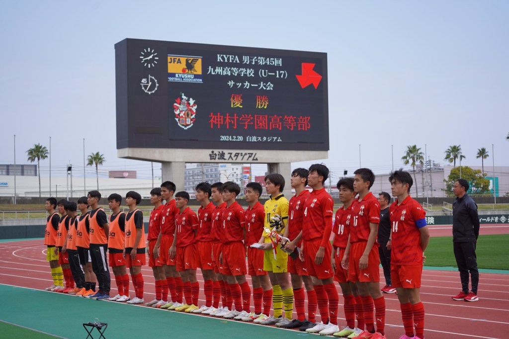 第45回九州高等学校(U-17)サッカー大会は2月20日(火)、白波スタジアムで決勝戦(VS 大津高校)が行われ、神村学園が2011年度大会(第33回大会)以来3回目の優勝を飾りました。春に開幕するJFAU-18高円宮杯プレミアリーグへ大きな弾みをつけることができました。夏の高校総体、冬の選手権と日本一の3大タイトルを全て勝ち取ることができるよう、チーム一体となってシーズンを戦い抜きたいと思います。引き続き応援のほどよろしくお願いいたします。